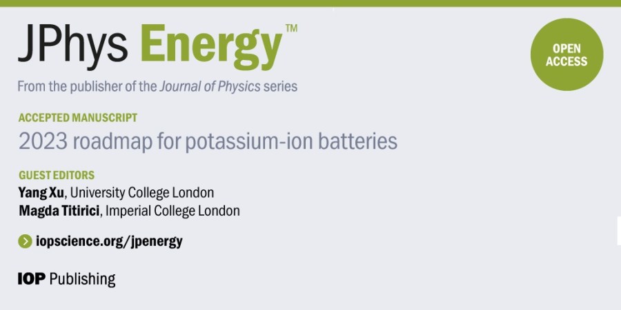 67. Yang Xu, Maria-Magdalena Titirici, Jingwei Chen, Furio Corà, Patrick L Cullen, Jacqueline Sophie Edge, Fan Kun, Ling Fan, Jingyu Feng, Tomooki Hosaka, Junyang Hu, Weiwei Huang, Timothy I Hyde, Sumair Imtiaz, Feiyu Kang, Tadhg Kennedy, Eun Jeong Kim, Shinichi Komaba, Laura Lander, Phuong Nam Le Pham, Pengcheng Liu, Bingan Lu, Fanlu Meng, David Mitlin, Laure Monconduit, Robert G Palgrave, Lei Qin, Kevin Ryan, Gopinathan Sankar, David O Scanlon, Tianyi Shi, Lorenzo Stievano, Henry Tinker, Chengliang Wang, Hang Wang, Huanlei Wang, Yiying Wu, Dengyun Zhai, Zhang Qichun, Min Zhou and Jincheng Zou, “2023 roadmap for potassium-ion batteries”, JPhys Energy, 2023, 5, 021502. [Link]